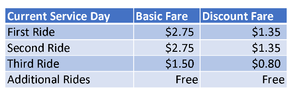 [From Connect Transit Card emai] Introducing the Connect Card “Daily Best Fare” on Regional Transit. Connect Card users on RT will no longer have to purchase Daily Passes up front*. Riders can now tap on bus or train validators for each ride and the appropriate single-ride fare will be deducted from the card’s cash value. The total amount of money withdrawn from the card will be a daily maximum equal to the cost of a day pass. For example: