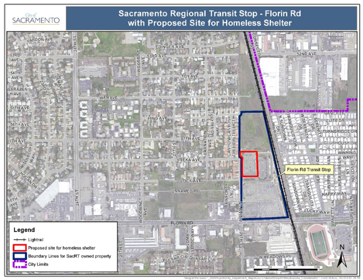 The City of Sacramento is proposing a 100-bed temporary homeless triage center on the northwest corner of the park-and ride lot near the Florin light rail station in South Sacramento.