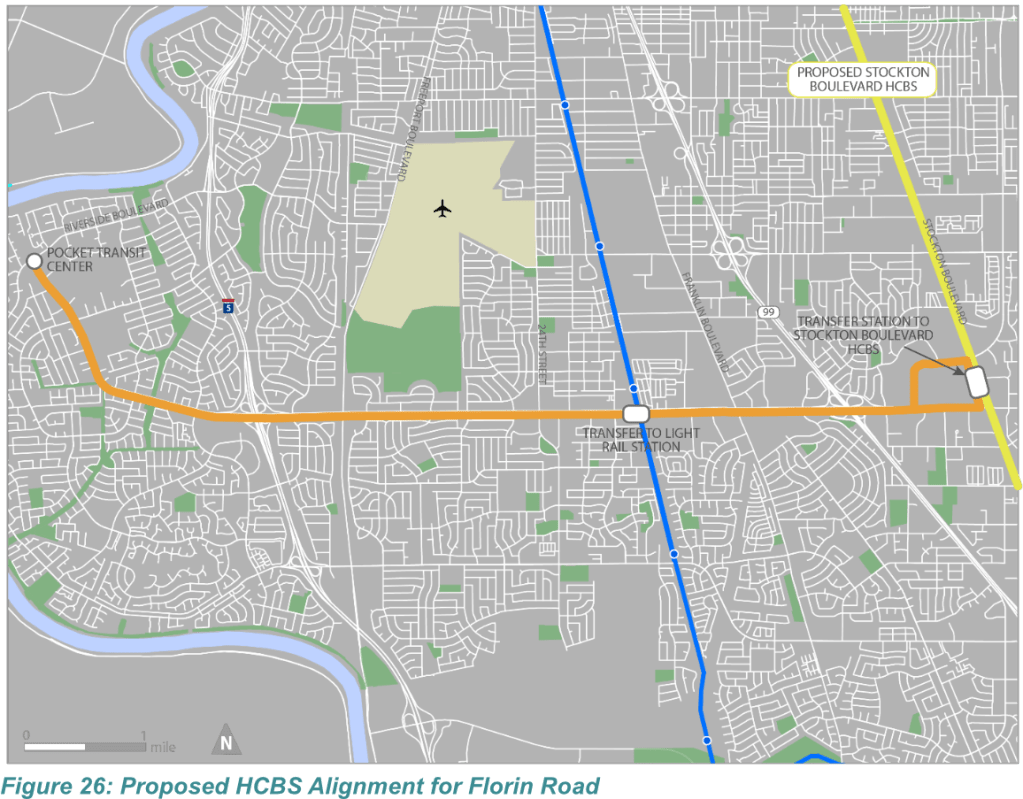 SacRT completed a High Capacity Bus Service Study in May 2021, using a Caltrans planning grant. STAR did not comment on the study during its development, nor on the final draft. But our current series on light rail extension and infill relates strongly to this study, as the study lays our SacRT’s criteria for investment in higher quality transit service. The High Capacity Bus Service webpage, the outreach summary, and Final Report are available. There are also a number of technical documents not linked. Stockton Blvd is not included in this study because it is the location of a City of Sacramento active redesign that will include bus enhancement, so is a separate document.