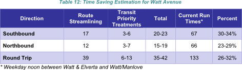 One of the analyses was about potential time savings for bus service improvements. The Watt example is below, with the highest savings of any of the corridors.
